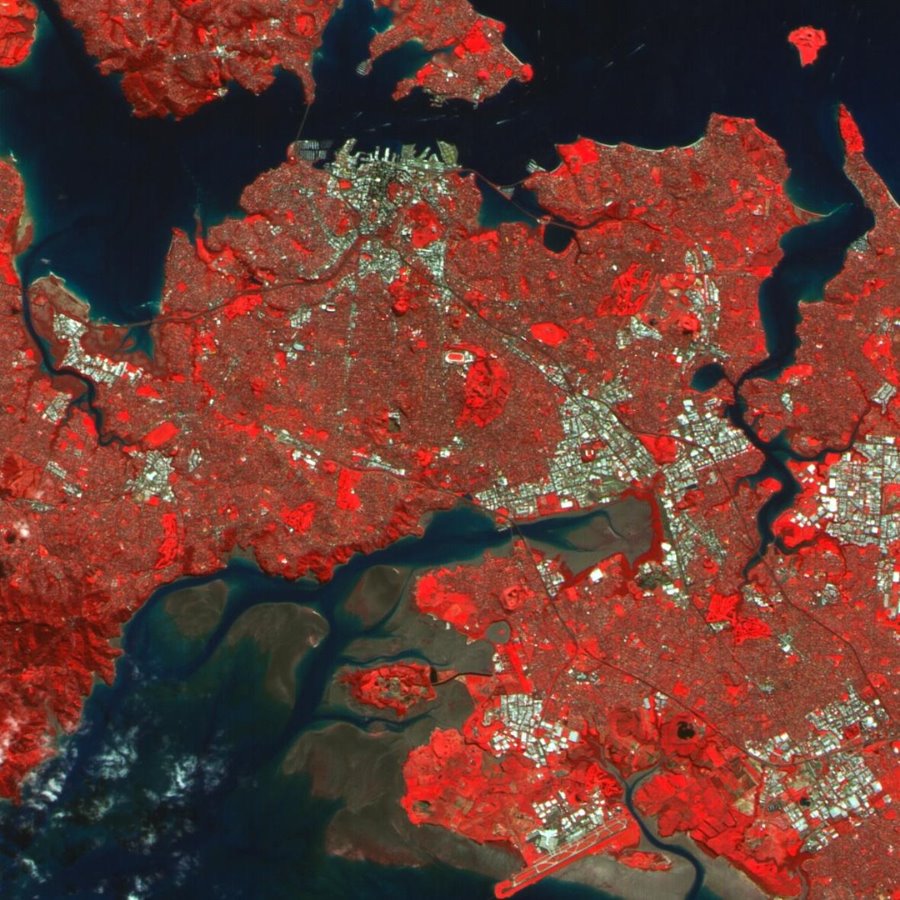 Revealing buildings and the landscape surrounding the city of Auckland, New Zealand, this image demonstrates that the satellite’s enhanced 22m wide-area multi-spectral imagery for mapping, agricultural monitoring and disaster relief programmes works well.